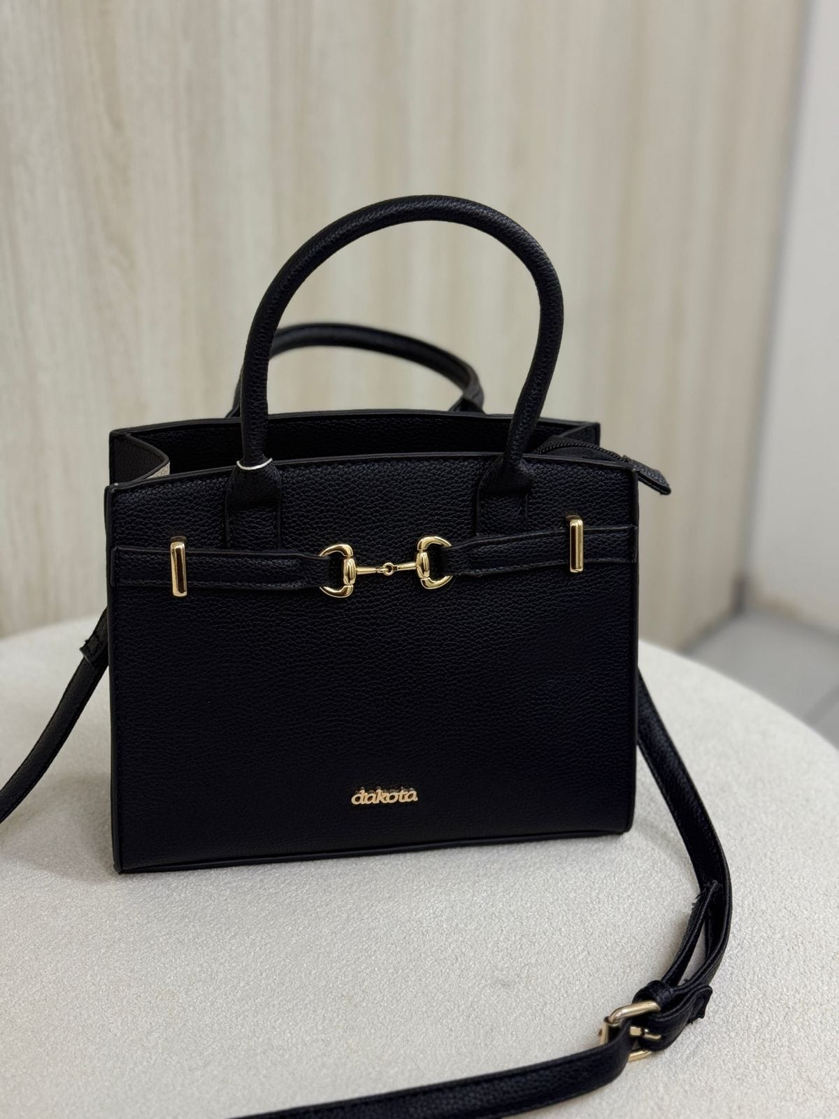 Elegância e praticidade em um só acessório! A Bolsa Dakota Preta possui design estruturado com acabamento texturizado, detalhe metálico dourado na parte frontal e logo discreto que valoriza o visual. Conta com alça de mão e alça longa regulável para usar no ombro ou transversal, ideal para o dia a dia ou ocasiões especiais. Compacta por fora, espaçosa por dentro!