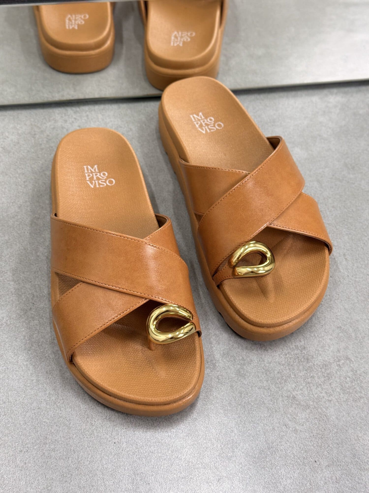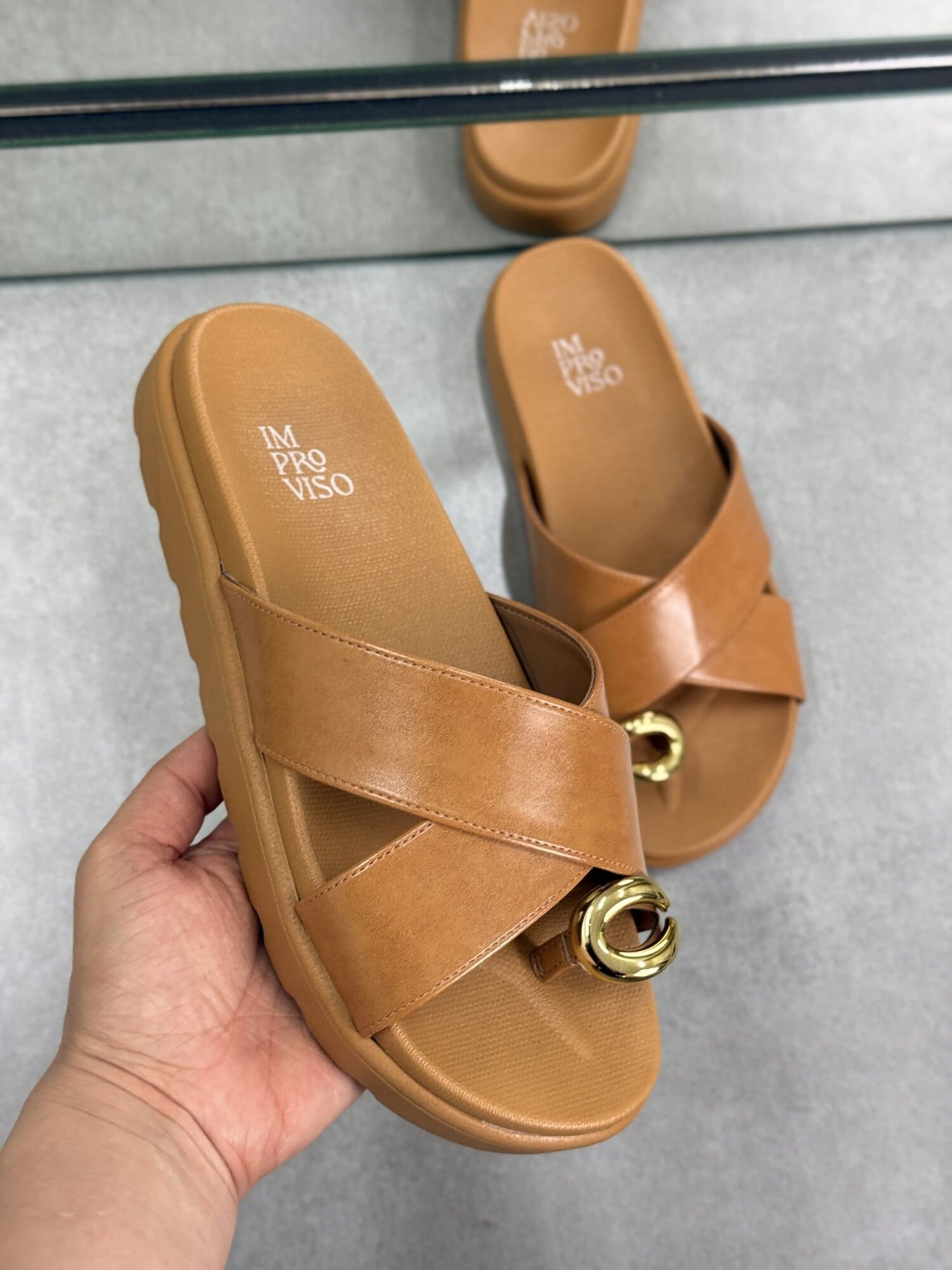 Papete Caramelo Tira Em X Com Detalhe Dourado improviso