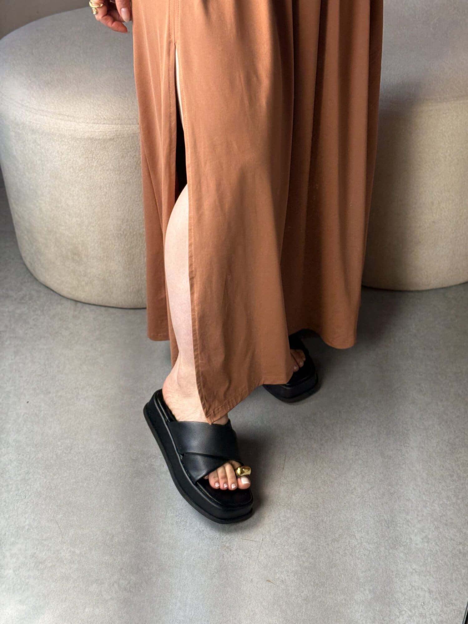 A sandália Nathalyta Papete Preta une elegância e conforto em um só modelo. Com tiras largas cruzadas e detalhe dourado no dedão, ela traz um toque moderno e sofisticado para o visual. O solado anatômico garante leveza e bem-estar ao caminhar, tornando-a perfeita para o uso diário. Versátil, combina facilmente com looks casuais ou produções mais estilosas, ideal para quem busca praticidade com um toque de luxo.