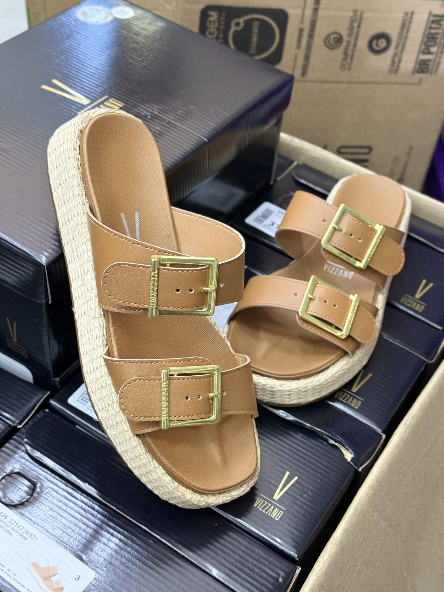 A Sandália Flatform Vizzano traz estilo e conforto para o seu dia a dia. Com design moderno, possui duas tiras largas em material sintético de alta qualidade, detalhe em fivelas douradas que garantem charme e sofisticação, além do solado em estilo corda que proporciona um toque rústico e atual. Ideal para compor looks casuais e descontraídos, é perfeita para quem busca praticidade sem abrir mão da elegância.
