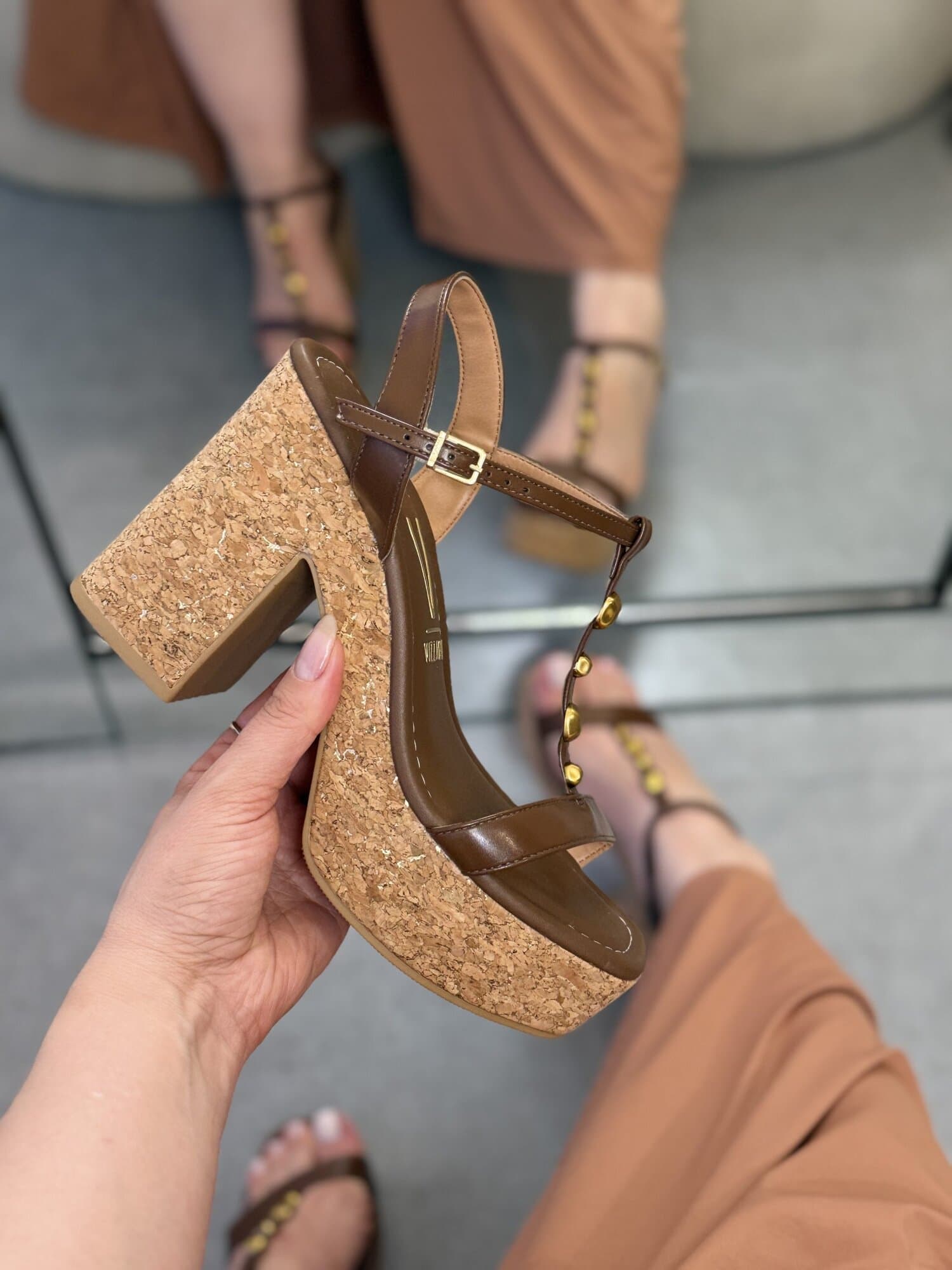 A sandália Vizzano marrom combina elegância e conforto em um design moderno e versátil. Com salto bloco em acabamento de cortiça, o modelo garante estabilidade e estilo em qualquer ocasião. Possui tiras finas com aplicações douradas que trazem um toque sofisticado e delicado, além de fivela ajustável para melhor ajuste aos pés. Ideal para compor looks casuais ou mais elegantes, essa sandália é a escolha certa para quem busca charme e conforto no mesmo calçado.
